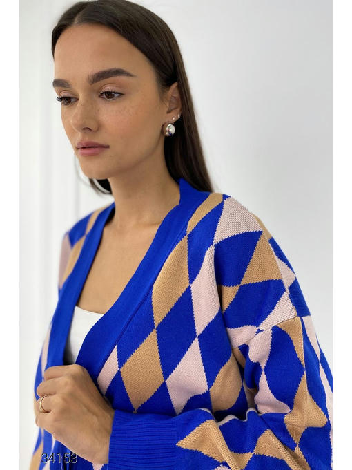 Кардиган свободного кроя из качественной вязки. V – образный вырез, заниженная линия плеч, манжеты и нижняя кромка в рубчик, планка на пуговицах. Размер универсальный, подходит на 42 – 48. Состав ткани: 100% – акрил.
