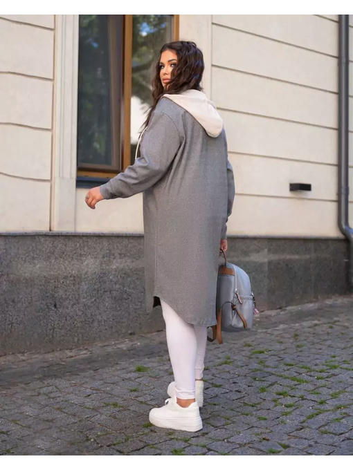 48 – 50 ог и об 120 см, длина 106 см, рукав 55 см.