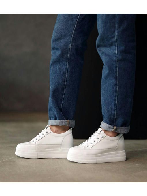 Кожаные кеды в белом цвете. Это база, из которой выйдет множество образов на каждый день. Внутри кожаная подкладка, стелька – просиликоненная, из экокожи, комфортно чувствуются на ножках. За счет высокой подошвы Ваши ножки визуально станут длиннее. Шнуровка прорезиненная, легко и удобно обуваются. Кеды 584895 очень удобные и стильные, поэтому подойдут для повседневного пользования.