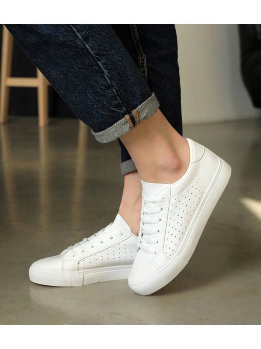 Белые женские кеды PLPS изготовлены из экокожи. Внутренняя подкладка из экокожи, стелька – текстильная, что обеспечит комфорт в течение дня. Поверхность покрыта фигурными отверстиями для перфорации, что делает их привлекательными, дышащими и комфортными. Кеды PLPS невероятно удобная, базовая и легкая модель, вес полупарка – 300 гр. Благодаря базовому дизайну и лаконичному исполнению кеды отлично подойдут для повседневных образов.