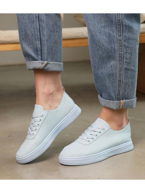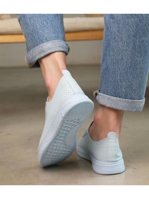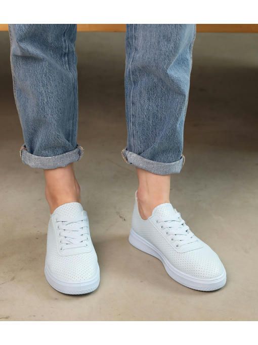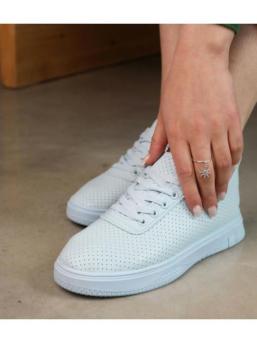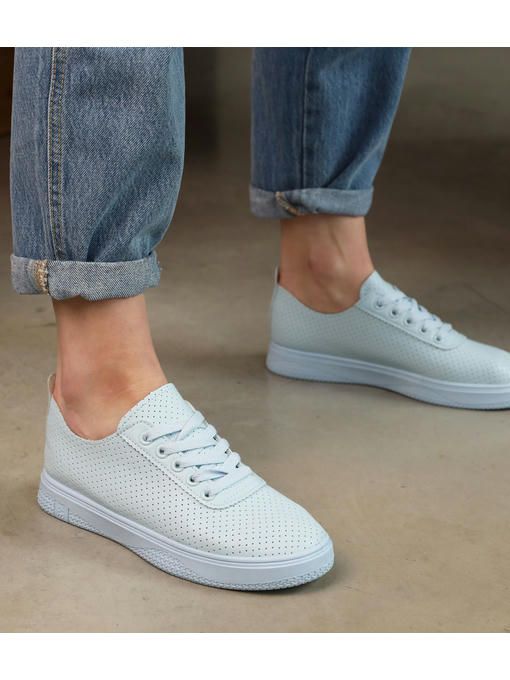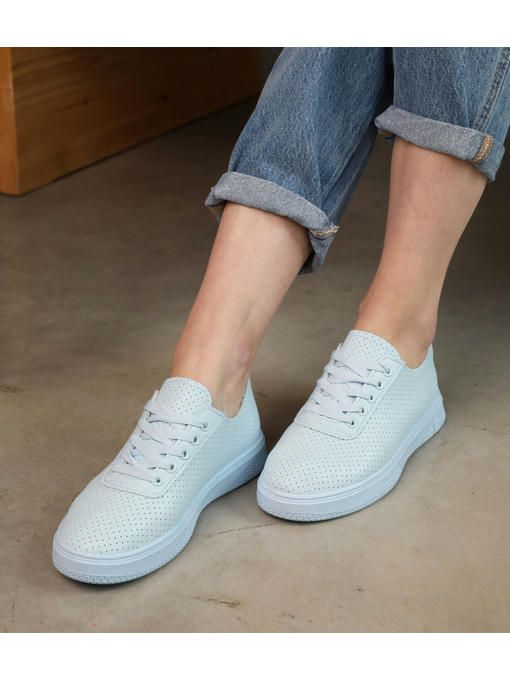 Кеды женские выполнены из мягкой экокожи с перфорацией, что делает их привлекательными, дышащими и комфортными. Внутренняя подкладка – экокожа, стелька текстильная, комфортно чувствуется при ношении. Подошва – EVA, износостойкая. Благодаря базовой голубой окраске и лаконичному исполнению кеды отлично подойдут для повседневных образов.