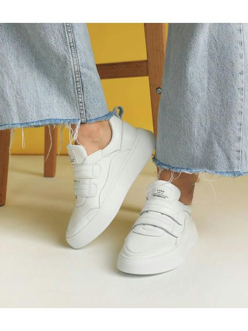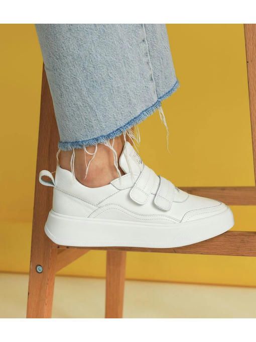 Классическая модель кедов в белом базовом цвете. Пара изготовлена из натуральной кожи, легкая, вес полупарка всего 320 грамм. Внутренняя подкладка кожаная, стелька просиликоненная, придает комфорт во время хождения. Кеды на липучках легко и быстро обуваются. Универсальные, красиво см; отрятся на ножках и отлично подчеркнут Ваши весенние образы.