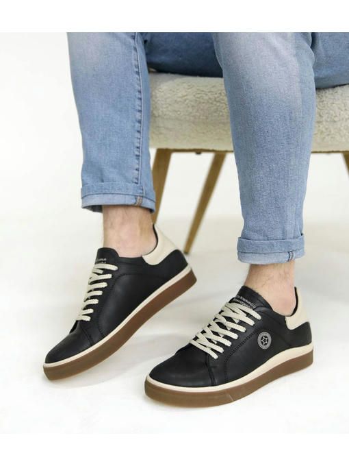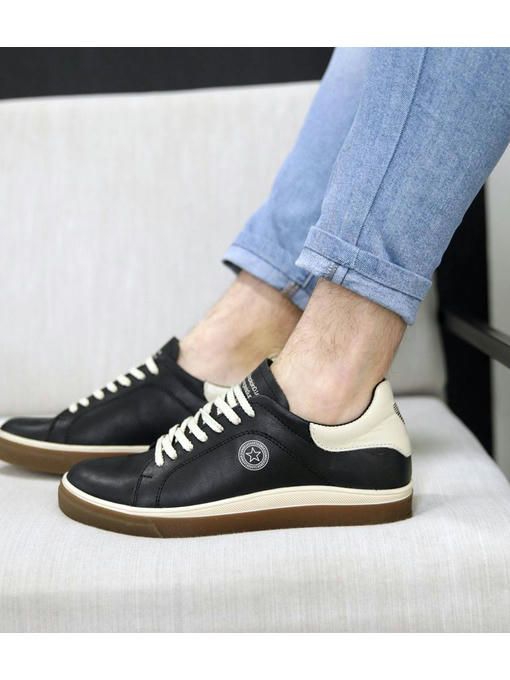 Мужские кеды в черном цвете, выполнены из натуральной кожи. Износостойкая подошва, удобная текстильная, просиликоненная стелька – все это делает кеды максимально комфортными. Пара легкая, вес полупарка – 380 грамм. За счет своего дизайна кеды отлично украсят Ваш образ.