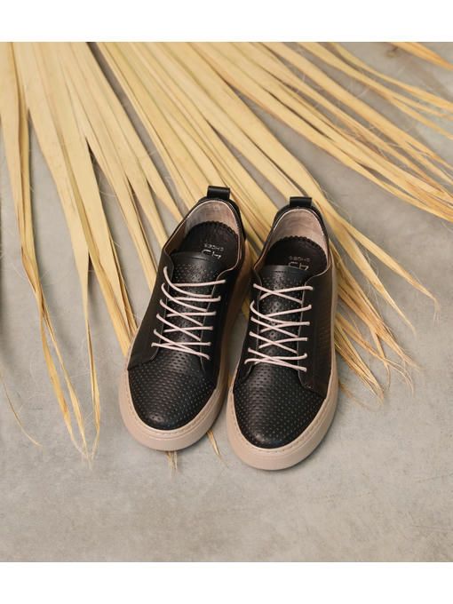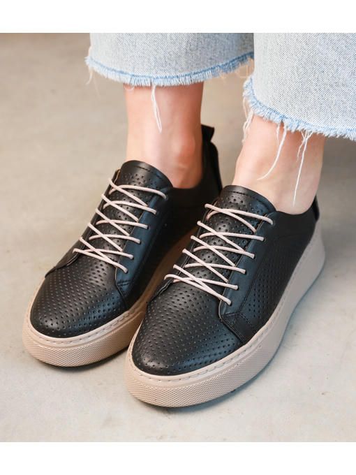 Обеспечить непревзойденный комфорт и при этом выглядеть изящно и стильно – вот главные критерии, к которым стремятся все модницы этого сезона. Женские кеды в универсальном черном цвете не только помогут вам в этом, но и подчеркнут красоту любого образа, ведь модель выполнена полностью из натуральной кожи, с перфорацией, что обеспечит отличную воздухопроницаемость. Внутренняя подкладка – кожаная, стелька – кожаная, просиликоненная. Кеды легкие, вес полупарка всего 250 грамм. Подошва – EVA, износостойкая, прошитая, ее высота – 3-4 см; Прекрасно подойдут как для ежедневного использования, так и на выход, с ними каждый образ будет удачным.
