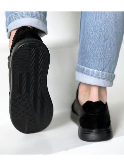 Очень удобные кеды в стильном черном цвете, изготовлены из сочетания натуральной кожи и замши. Внутренняя подкладка кожаная, стелька кожаная. Подошва полиуретановая, износостойкая. Кеды легкие, вес полупарка всего 310 грамм, максимально комфортные, очень круто см; отрятся и отлично дополнят твой look.