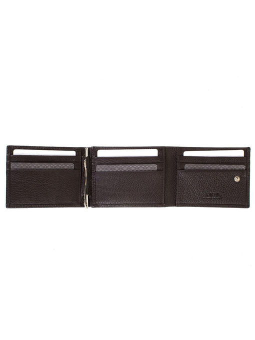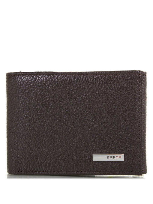 Продуманная конструкция, идеально точный раскрой деталей, технологическая последовательность их соединения и установки фурнитуры, мастерство выполнения каждого шва позволили производителю этого кожаного кошелька получить на выходе такую красивую, выверенную форму, которая при сложении трех отсеков дает столь четкое совпадение линий, ровные углы, плавные сгибы. Кошелек предлагает Вам мелкие монеты держать в заднем внешнем кармане на «молнии», а внутри размещать денежные купюры и банковские, дисконтные карты, позволяющие при необходимости рассчитываться безналичным способом. Плотное удержание аксессуара в закрытом состоянии обеспечивает механическая кнопка. Брендовый кошелек ТМ KARYA Вы можете купить в нашем магазине по довольно экономной цене.
