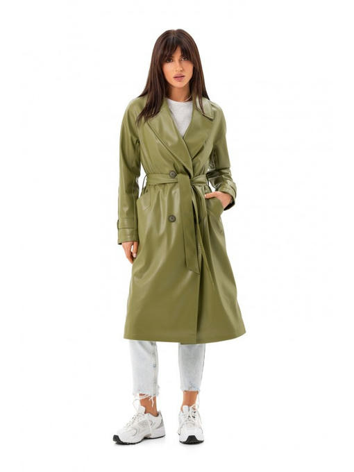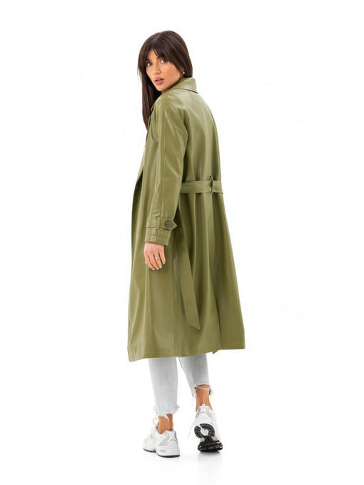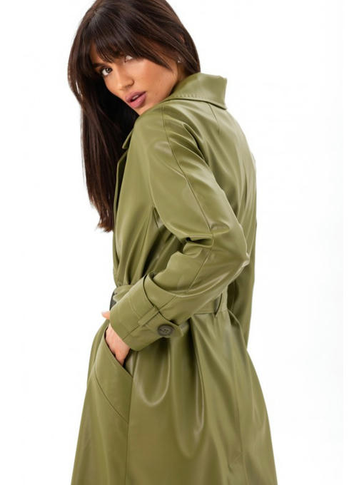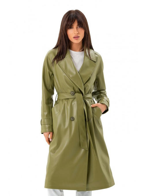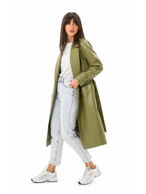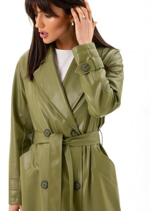 Кожаный тренч зеленый