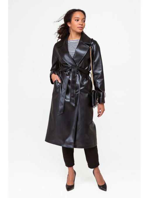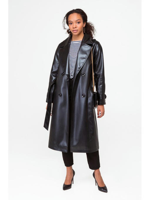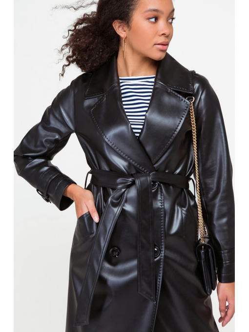 Кожаный тренч черный