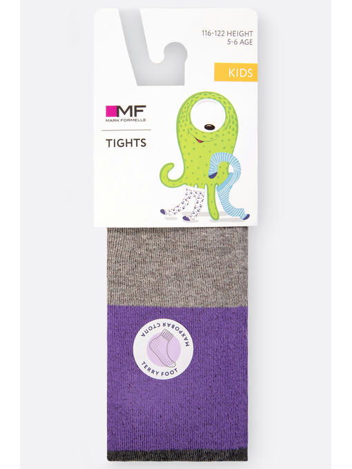 Детские стильные колготки с махровой стопой для девочки. Украшены рисунком в полосочку.