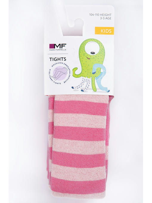 Махровые детские колготки с рисунком в виде поперечных полосок. Связаны из натуральной хлопковой пряжи с добавлением безопасных синтетических волокон.