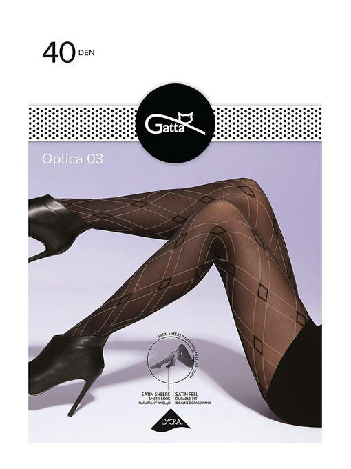 Непрозрачные фантазийные колготки из мягкой микрофибры с лайкрой, плотностью 40 ден, с комфортным широким поясом, ластовицей и усиленными плоскими швами. Вся модель украшена контрастным тканым узором в виде крупной сетки с мелкими ромбами