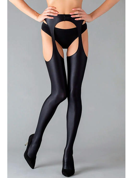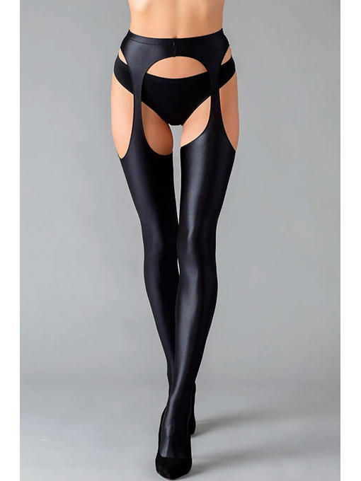 Плотные эротические колготки блестящей фактуры, имитирующие кожаные чулки с поясом. Вырезы в зоне бикини обработаны очень нежным швом. Потрясающий внешний вид изделия идеально сочетается с подарочной упаковкой в форме книги, содержание которой перенесет вас в удивительную историю об искусстве любви