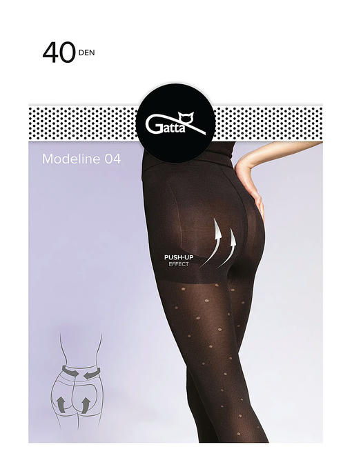 Непрозрачные фантазийные колготки из мягкой микрофибры с лайкрой, плотностью 40 ден, с комфортным широким поясом, ластовицей, плоскими швами и усиленными шортиками с эффектом push-up, приподнимающими ягодицы. Вся модель декорирована просветным узором “горошек”