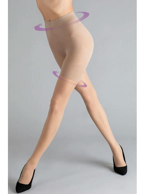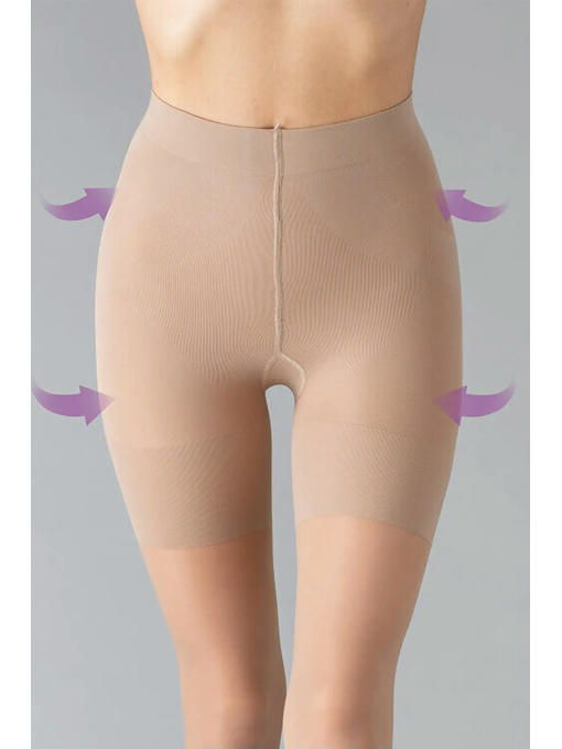Тонкие корректирующие колготки плотностью 40 ден, c моделирующими шортиками 70 ден, комфортным широким поясом, плоскими швами и х/б ластовицей, мысок укреплен. Благодаря системе эластичных полос формируют бедра, приподнимают ягодицы, сглаживают живот