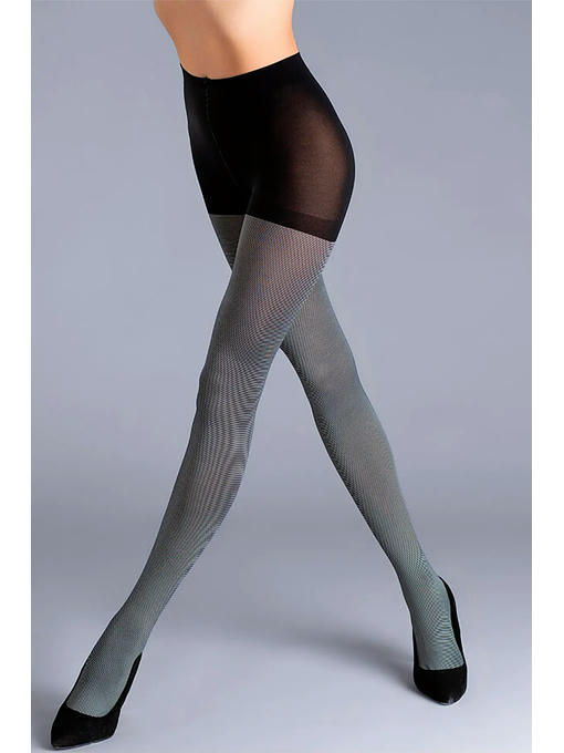 Непрозрачные фантазийные колготки в мелкую горизонтальную полоску, плотностью 60 ден, с комфортным широким поясом, усиленными шортиками, ластовицей и плоскими швами. В составе – полиамид, который имеет приятную бархатистую текстуру, обладает повышенной прочностью и хорошо сохраняет цвет, и эластан, обеспечивающий превосходное облегание