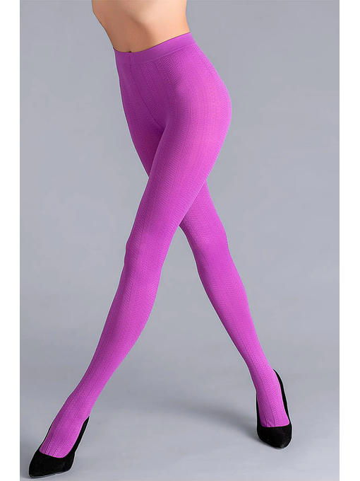 Непрозрачные фантазийные колготки из бархатистой микрофибры с рельефным геометрическим узором, плотностью 100 ден, с широким комфортным поясом, хлопковой ластовицей и усиленными плоскими швами. Микрофибра отлично впитывает влагу, сохраняет тепло и приятно ощущается на теле, а эластан обеспечивает превосходное облегание ножки