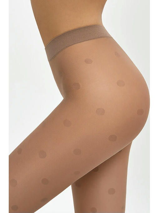 Тонкие фантазийные колготки “в горошек”, плотностью 20 ден, с широким комфортным поясом, х/б ластовицей, плоскими швами и невидимыми усиленными мысками. Отсутствие шортиков позволяет сочетать колготки с короткими платьями, юбками и шортами, а невидимый мысок отлично смотрится с открытой обувью — туфлями и босоножками