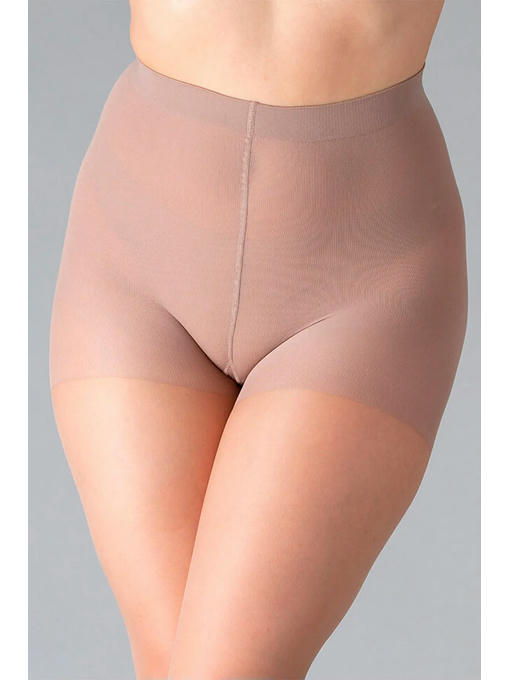 Тонкие лечебные колготки с распределенным давлением, формованные, плотностью 20 ден, с укрепленным мыском, уплотненными поддерживающими шортиками, комфортным широким поясом, плоскими швами и задней вставкой. Модель plus size (больших размеров)