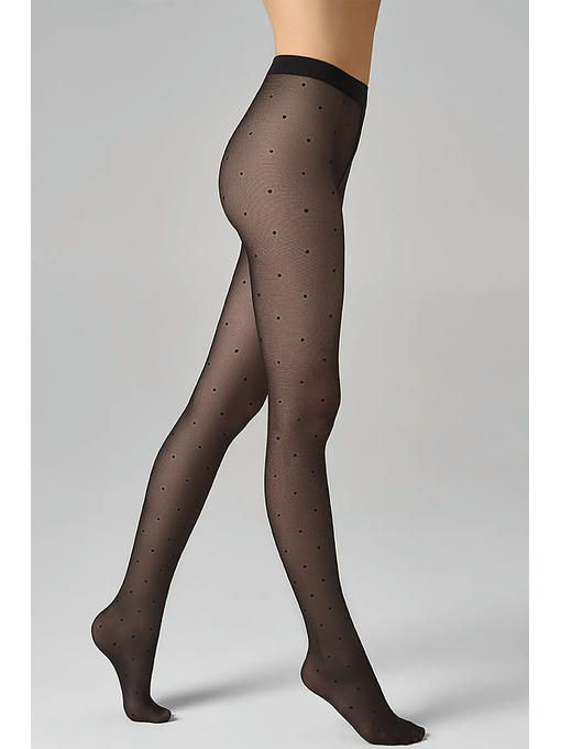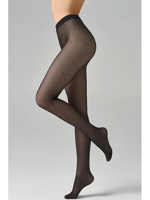 Прозрачные фантазийные колготки плотностью 40 ден, декорированные трендовым тканым рисунком “мелкий горошек”. Превосходно облегают и комфортно ощущаются на теле благодаря гигиеничной ластовице и удобному поясу. Невидимый мысок отлично смотрится с открытой обувью, а прозрачный торс без шортиков позволяет сочетать колготки с короткими платьями и юбками