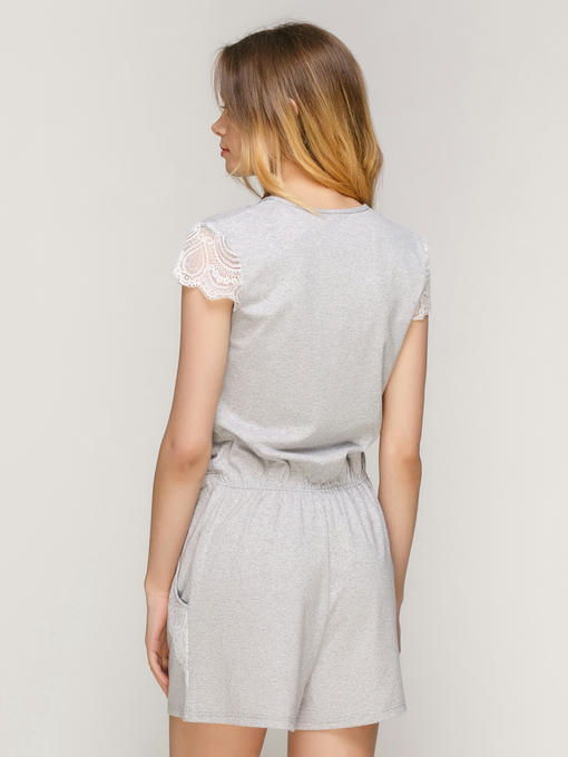 Комбинезон женский.вискоза c кружевом, меланж с шампанью