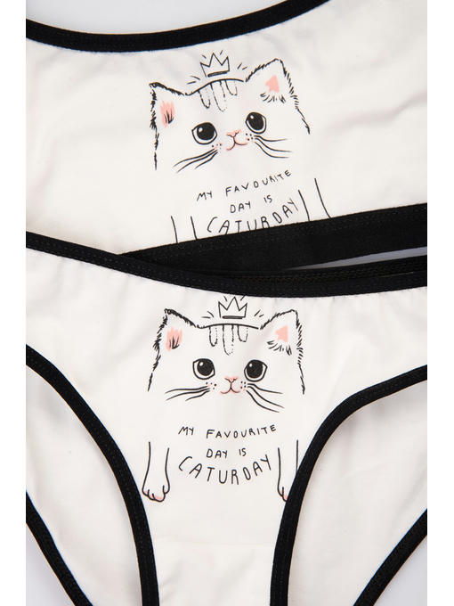 Комплект белья для девочки и девочки подростка выполнен из натурального хлопка с эластаном. Бельевой комплект черно-белого цвета комфортно носить под любую одежду круглый год. В наборе майка топ для девочек и трусы с рисунком Котик.