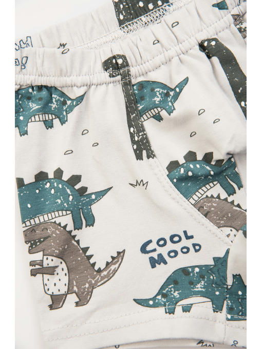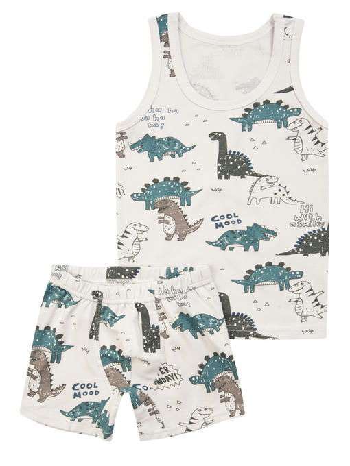 Маечка на широких бретелях и трусики-боксеры с рисунком динозаврики. Пояс на резинке комфортно прилегает к телу.