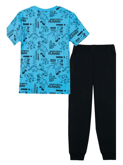 Комплект: футболка и брюки. Выполнен из эластичного и приятного на ощупь трикотажа. Брюки с карманами в боковых швах. Эластичный пояс со шнурком. Эластичные манжеты по низу брючин. Высокое содержание хлопка 95%. Благодаря наличию эластана в составе ткани изделие держит форму и меньше мнется