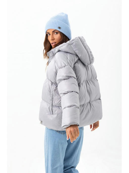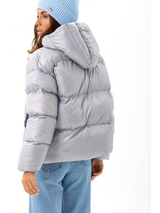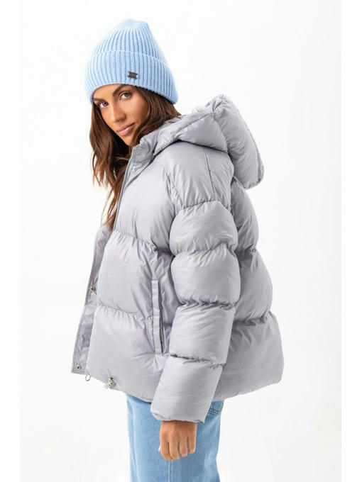 Короткая куртка удобная, теплая и стильная. Верх – плащевая водоотталкивающая ткань, наполнитель – синтепух. Теплая женская куртка имеет горизонтальную просрочку. Есть прорезанные карманы. У куртки спущен рукав. Воротник – стойка. Модель застегивается на молнию, закрытую планкой на кнопках. По низу изделия находится кулиска, которой можно регулировать его ширину. Важная деталь зимней куртки – наличие капюшона. В случае необходимости его можно отцепить.