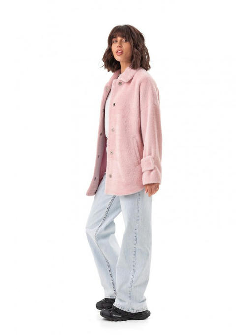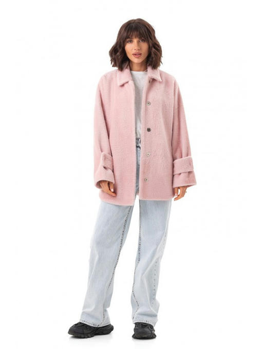 Короткое пальто из альпаки розовое