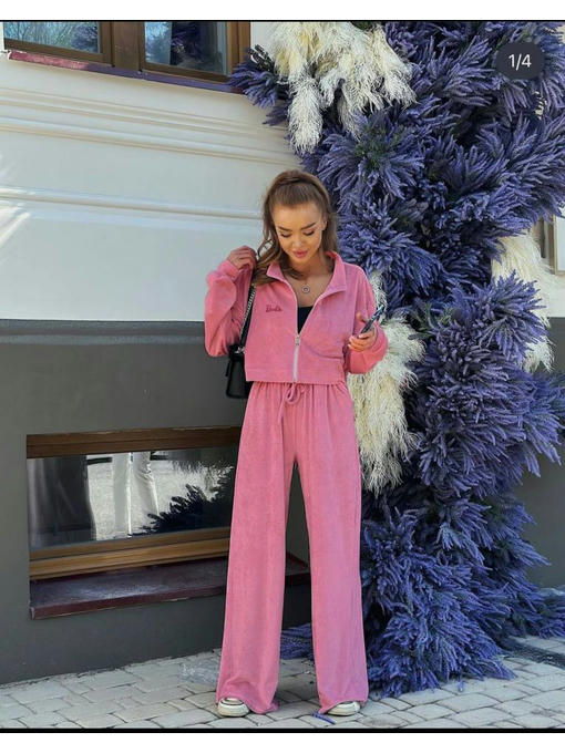 Хит сезона, ошеломленный костюм “Barbie”Ткань: турецкий велюр, очень мягкий и приятный к телу Надпись на кофте выполнена машинной вышивкой