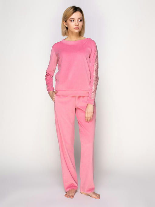 Костюм велюровый женский, цвет розовый, велюр с кружевом