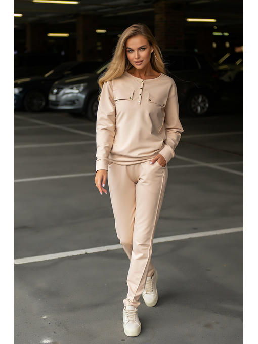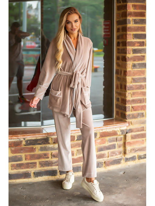 Костюм велюровый женский, цвет песочный, кофта под пояс с брюками,