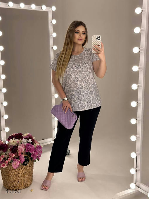 Костюм женский больших размеров. Брюки на резинке. Ткань: блуза – софт, штаны – масло