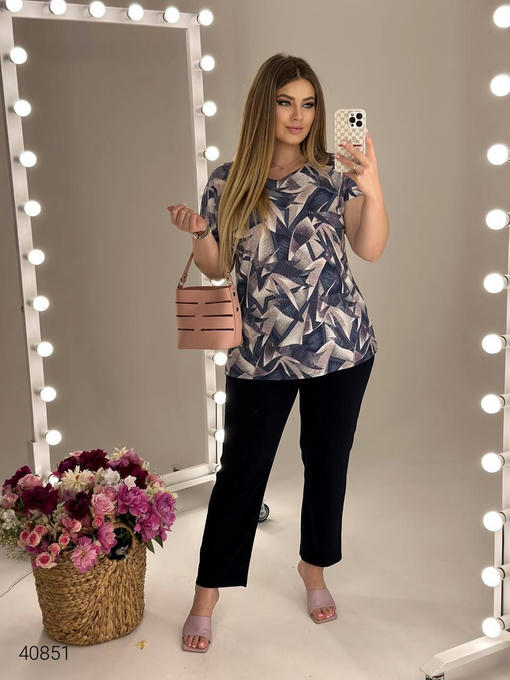 Костюм женский больших размеров. Брюки на резинке. Ткань: блуза – масло, штаны – масло