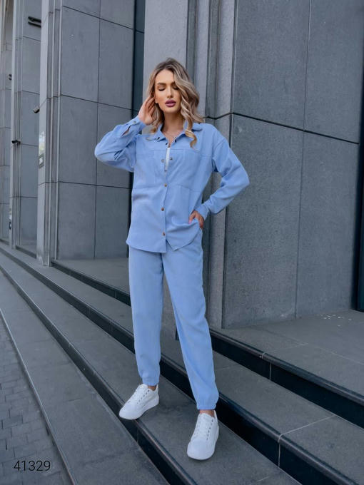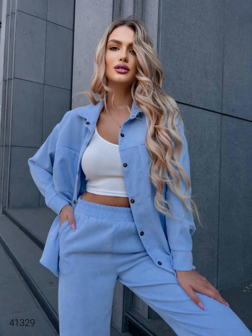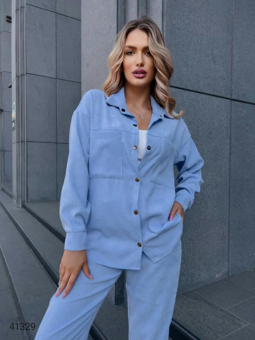 Костюм женский вельветовый. Прямая рубашка и штаны. Ткань: микровельвет, тянется.