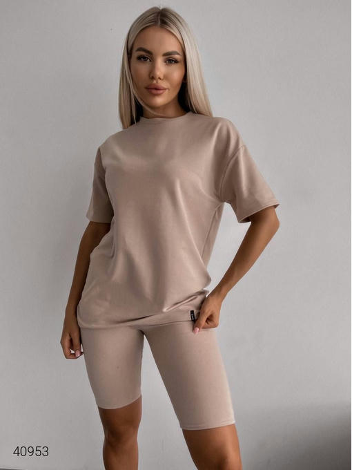 Ориентировочные замеры по готовому изделию: 42 (S) (Об. Гр. 98 см. Длина. футболки 69 см. ОБ 84 – 92 см. Длина. велосипедки 51 см. ), 44 (М) (Об. Гр. 104 см. Длина футболки 70 см. ОБ 90 – 98 см. Длина велосипедки 52 см. ), 46 (L) (Об. Гр. 110 см. Длина футболки 70 см. ОБ 96 – 104 см. Длина велосипедки 52 см. )