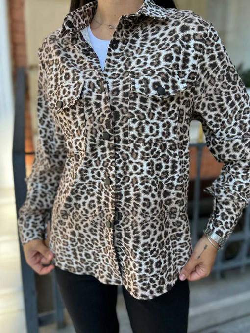 Рубашка имеет два накладных кармана, застегивается на кнопки