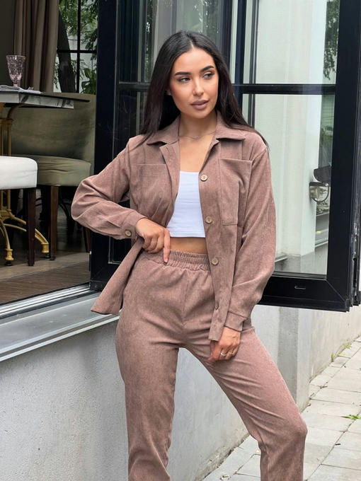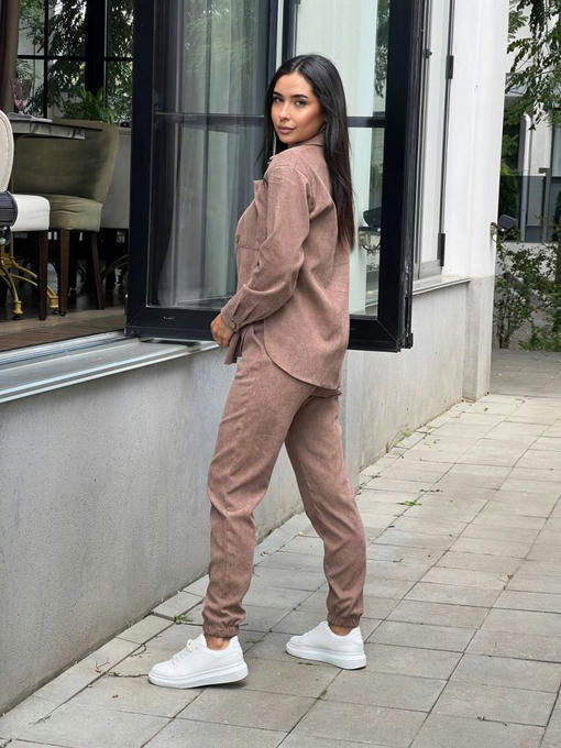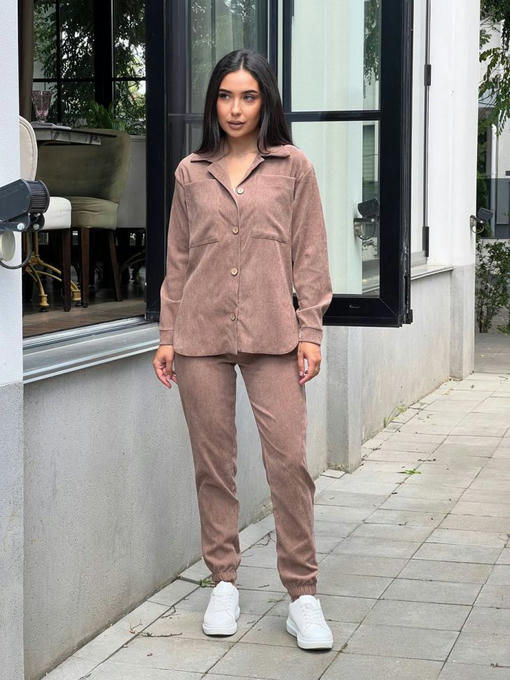 Костюм из мягкого микровельвета состоит из рубашки и брюк.
