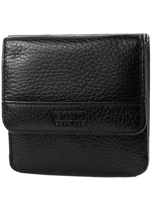 Маленький, тонкий, крепко застегивающийся механической кнопкой, этот кошелёк выглядит лаконично и привлекает интересным устройством. Аксессуар торговой марки BOND изготовлен из высококачественной натуральной кожи, наружная сторона у него чёрная, а внутренняя красная. Контрастность радует глаз и непременно понравится владелице, ведь каждый раз при расстёгивании кошелька-портмоне она будет видеть красивую внутреннюю сторону. Конструкция изделия несложная, разделение на две части помогает рационально задействовать небольшой объём. Разворот и автономная часть под клапаном гармонируют друг с другом по форме, пользоваться ими можно раздельно. В аксессуар поместится всё, что нужно для совершения повседневных покупок и платежей