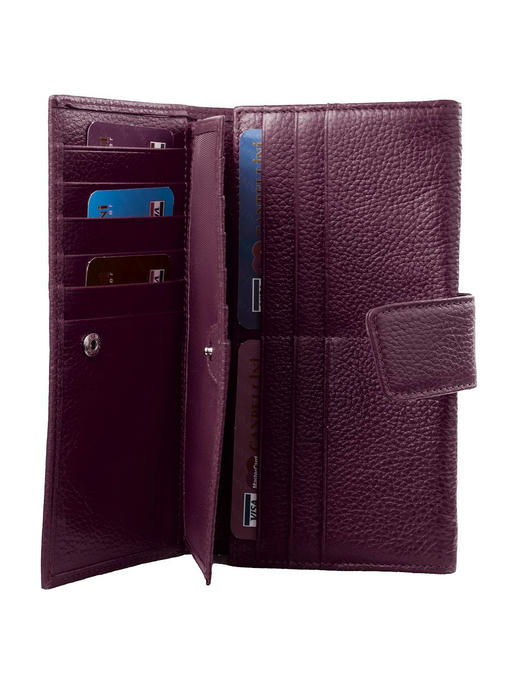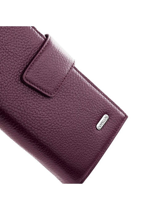 Тёмно-фиолетовый неизбитый цвет всегда останется приметной особенностью этого кожаного кошелька. Модель торговой марки CANPELLINI интересна и расцветкой, и конструкцией. Однотонность изделия удачно подчёркивают немногочисленная фурнитура и небольшая эмблема бренда, добавляющие светло-серебристые штрихи в образ. Вертикальный кошелёк-портмоне застёгивается широким клапаном на кнопке, внутри столь же надёжно фиксируется дополнительная панель. Расширение площади обеспечивает хорошую вместимость изделия, рассчитанного на 17 карточек, купюры и монеты. Большое прозрачное окошко поможет аккуратно разместить содержимое. Первосортное качество кожи и изготовления – гарантия долговечности стильного предмета гардероба