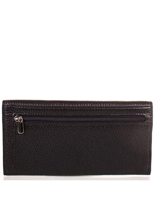 На тыльной стороне кошелек имеет один большой горизонтальный накладной карман, а также прорезной карман на молнии.