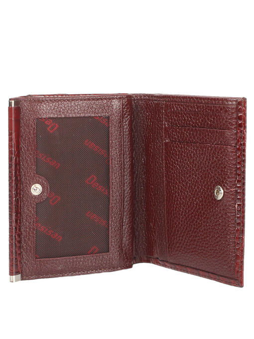 Компактный в устройстве, по форме близкий к стилю ретро и новомодный в дизайне, этот женский кошелек привлекает красотой и удобством. Модель торговой марки DESISAN изготовлена снаружи из фактурной, тисненой под змею натуральной кожи, которая выглядит эффектно. Внутри изделие тоже впечатляет добротностью кожи, крупнозернистая поверхность которой отражает деловой, практичный характер этого предмета гардероба. Бордовый цвет здесь в меру яркий, с плавными переходами между оттенками. Такая вещица – украшение гардероба, и для обращения с наличностью, банковскими или дисконтными картами и пропуском-проездным предусмотрено всё необходимое – два раздельных отсека позволяют распределить по своим местам купюры, монеты и прочие предметы