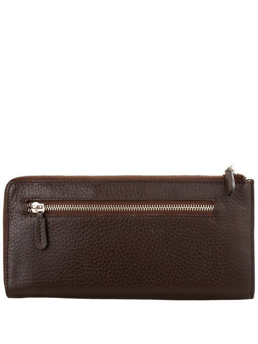 Большой формат, плотность натуральной кожи интересно совмещаются в этом женском кошельке с конструктивной лаконичностью и оригинальностью. Аксессуар из коллекции турецкой торговой марки GRASS удивляет и радует возможностью приобрести стильную и удобную вещь для повседневного обихода. Застёжка-молния с крепкими металлическими зубцами огибает прямоугольную форму с двух сторон, изделие раскрывается мягко. Внутренняя поверхность отделана плотной подкладочной тканью, из которой изготовлены и кармашки для карточек, и отделения для купюр. Пристежной вкладыш крепится аккуратными кнопками посередине, он расширяет полезное поле кошелька-портмоне дополнительными отделениями. Снаружи имеется карман-монетница. Аксессуар первосортного качества привлекает также лаконичным дизайном, спокойным и представительным коричневым цветом.