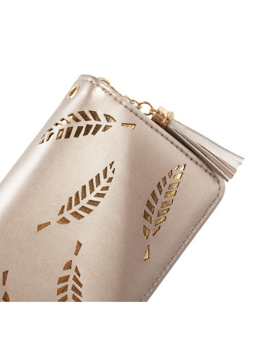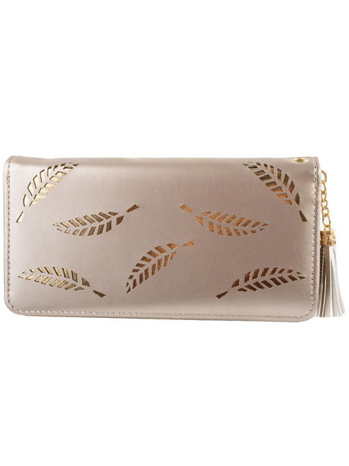 Женский кошелек торговой марки VALIRIA FASHION изготовлен из кожзаменителя Аксессуар дополнен металлической фурнитурой золотистого цвета. привлекательный дизайн в виде тропических листочков. Многофункциональный кошелек с одним основным отделением, в котором можно разместить купюры, мелкие монеты, банковские или дисконтные карты и визитки.