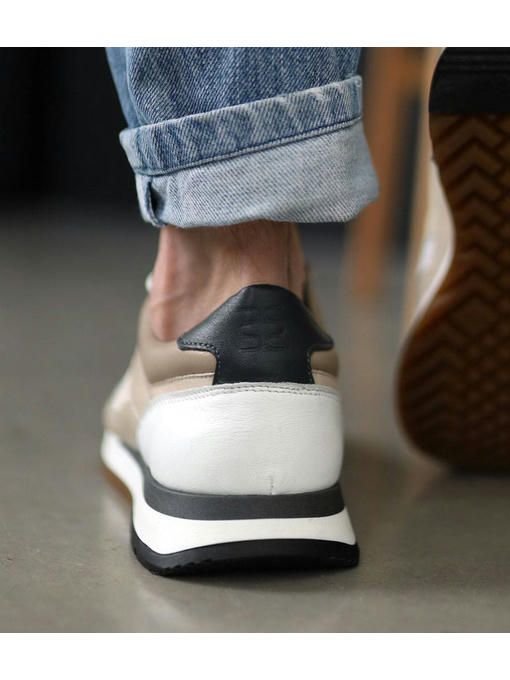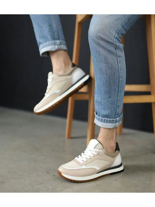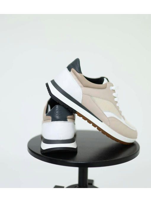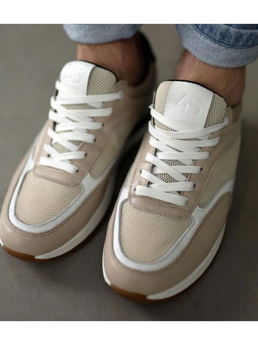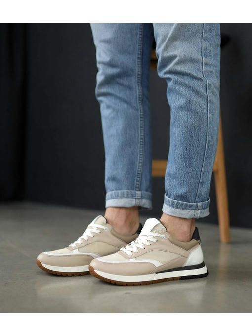 Мужские кроссовки в бежево-белом цвете, исполнены с сочетанием натуральной кожи и текстиля. Внутренняя подкладка текстильная, стелька – текстильная, просиликоненная. Стильная износостойкая подошва – EVA. Кроссовки легкие, вес полупарка – 365 гр. Максимально комфортная и универсальная пара, которая отлично подойдет к каждому образу.