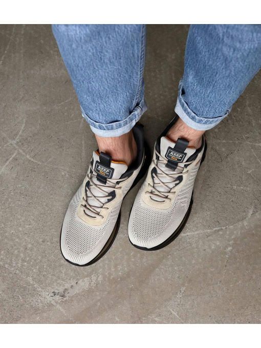 Мужские кроссовки в бежево-черном соединении. Кроссовки легкие, выполнены из текстиля, внутри из текстиля, стелька удобная, текстильная. Подошва – пена, легкая и добавляет удобства во время хождения. Кроссовки маломерят, поэтому обращайте внимание на размерную таблицу.