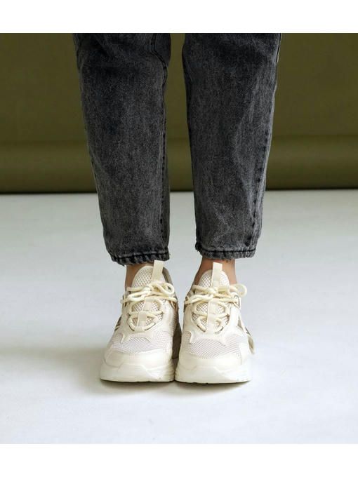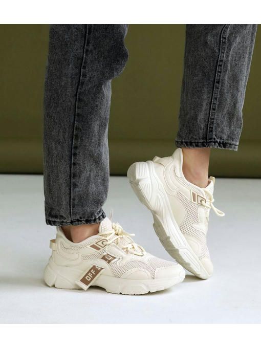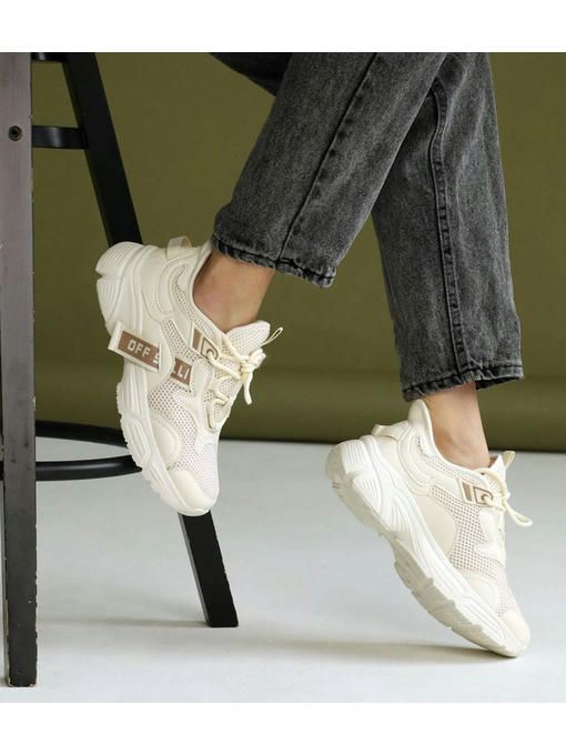 Кроссовки женские в бежевом базовом цвете. Актуальная и удобная пара, выполненная из текстиля и экокожи. Внутренняя текстильная подкладка, стелька мемори, придает комфорт во время хождения и прекрасно ощущаются на ножках. Подошва на пене, высота – 5 см;, очень легкие, вес полупарка – 200 грамм. Кроссовки 585304 универсальны, идеально подойдут на каждый день.