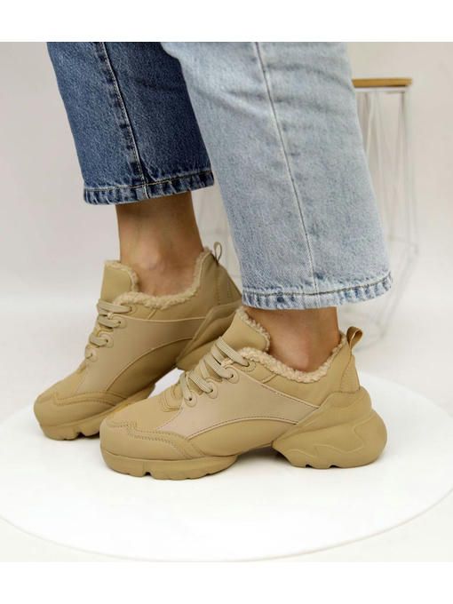 Кроссовки женские в бежевом цвете. Актуальная, стильная и удобная пара, выполненна из экокожи. Внутренняя подкладка с искусственного меха. Стелька утепленная, комфортно чувствуется при ношении. Кроссовки универсальные, идеально подойдут на каждый день и под каждый образ.