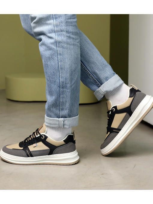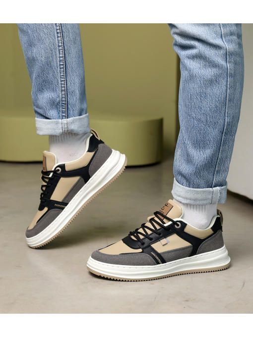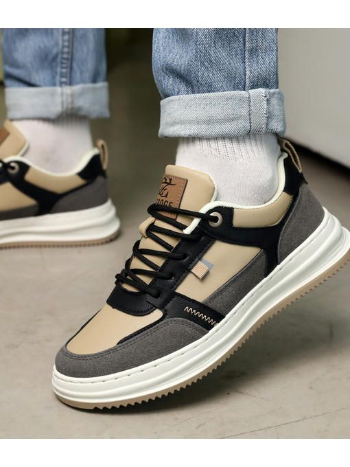 Кроссовки в стильном сочетании бежевого, серого и черного цветов, выполнены из экокожи. Внутренняя подкладка из текстиля, стелька просиликоненная, придает комфорт во время хождения. Подошва – EVA, обеспечивает удобство в эксплуатации, превосходную амортизацию и надежное сцепление. Завершает уникальный классический дизайн такой модели круглый мыс. Такие кроссовки уместны для построения модных образов для межсезонья в молодежном и повседневном направлениях.