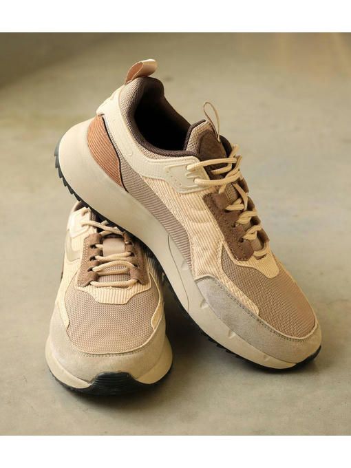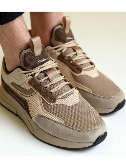Стильные мужские кроссовки в классном сочетании бежевого и коричневого цвета. Кроссовки выполнены из текстиля и нубука, внутри текстиль, стелька удобная, текстильная. Пара легкая, вес полупарка – 310 гр. Подошва – пена, ее высота – 2,5-4 см; Кроссовки маломерят, поэтому обращайте внимание на размерную таблицу.